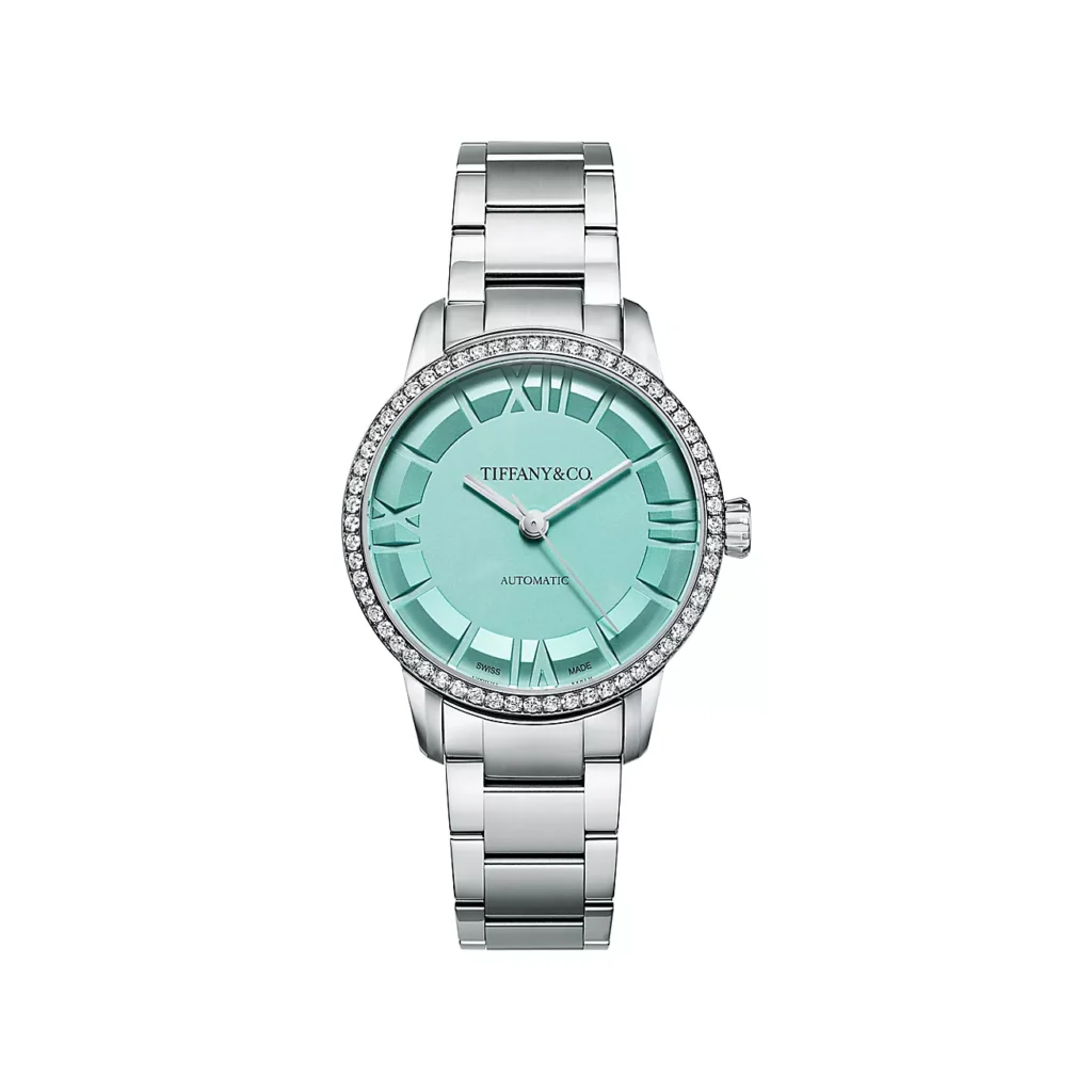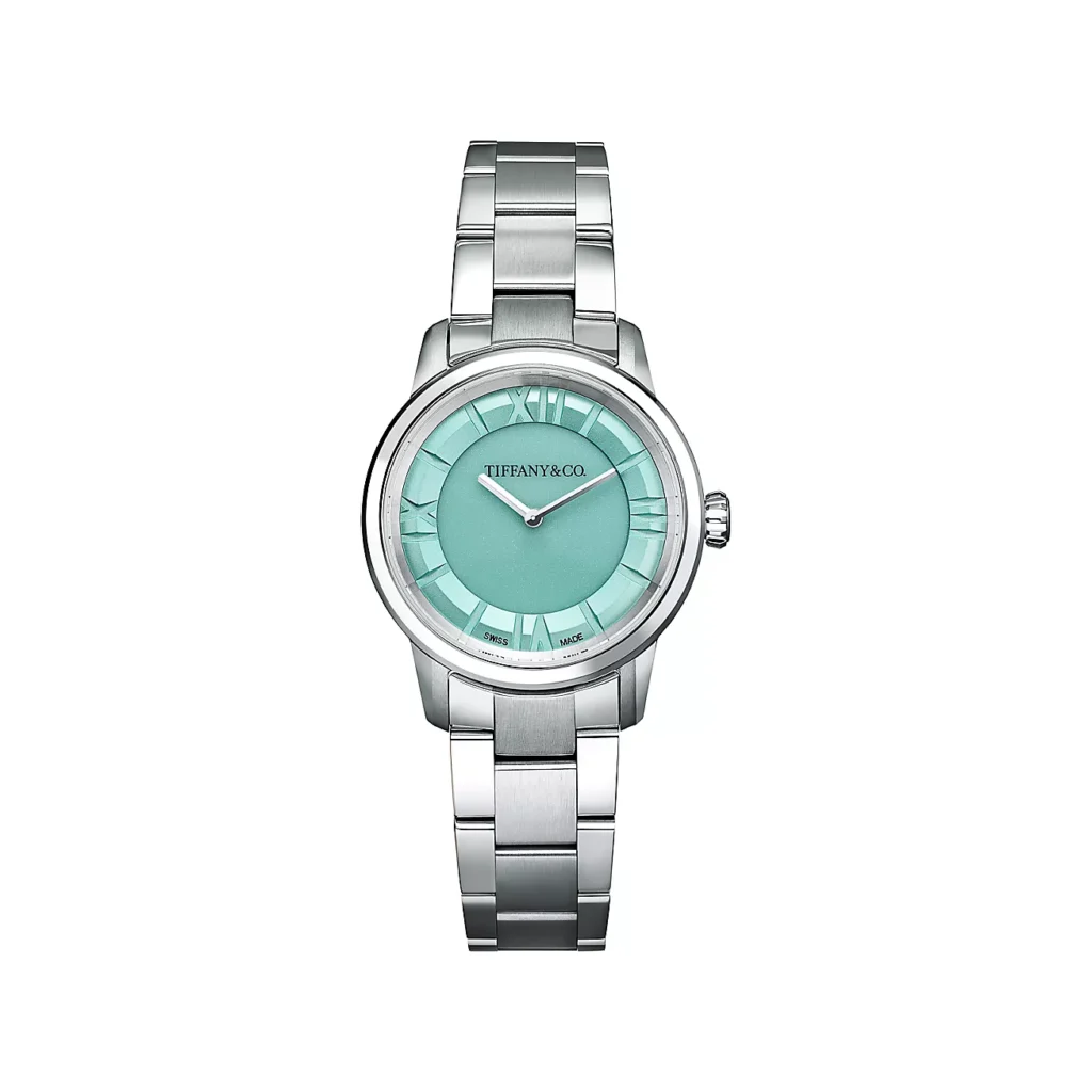 Disponible en tres tamaños (29 mm, 34 mm y 38 mm), la colección ofrece carátulas en blanco o en el inconfundible Tiffany Blue®. La esfera presume un diseño sectorial inspirado en los años 50, con detalles que juegan con la profundidad y crean ilusiones ópticas de gran refinamiento.