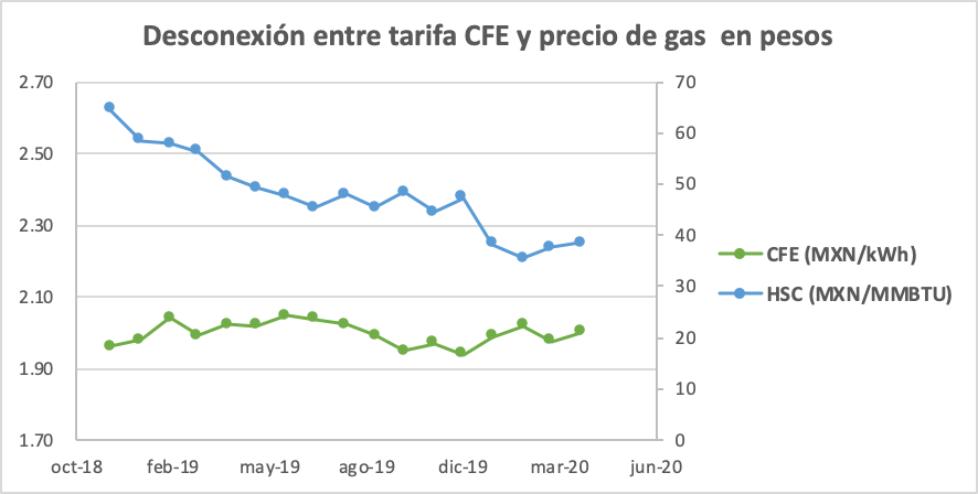 “Desde diciembre 2018 hasta la fecha las tarifas han permanecido prácticamente constantes en términos reales, cuando en este periodo (y especialmente en lo que va de 2020) hemos sido testigos de fuertes cambios en los precios de los combustibles, en el tipo de cambio y en los precios del Mercado Eléctrico Mayorista (MEM)”, detalla.