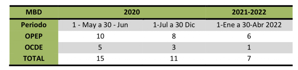 - Ultimo a seguir un ajuste de 6.0 MBD durante un período de 16 meses, del 1 de enero de 2021 al 30 de abril de 2022.