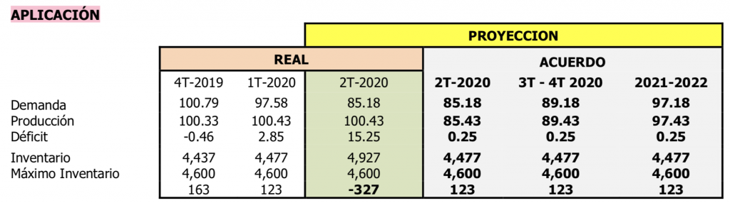 - Acuerdo a la proyección actual hay una sobre oferta de 15.25 millones de barriles diarios y mantenerlos al mes de Mayo, tendríamos un problema debido a que habría un déficit de 327 millones de barriles; debido a esto la OPEP + OCDE han decidido recortar la producción en función de la demanda proyectada del 2T -2020 al 4T- 2022.