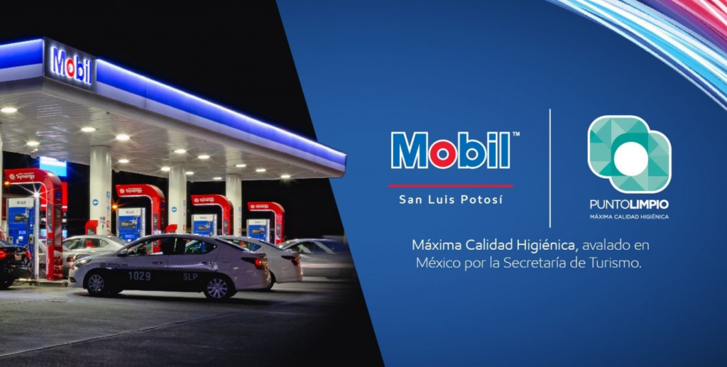 Las Estaciones de Servicio Mobil recibieron la certificación Punto Limpio, sello de máxima calidad e higiene que otorga la Secretaría de Turismo y esta avalado por la Secretaría de Salud y la Secretaría del Trabajo y Previsión Social como parte de los esfuerzos de Mobil S.L.P. para garantizar un servicio seguro y confiable ante los efectos derivados de la pandemia del Coronavirus (Covid-19).