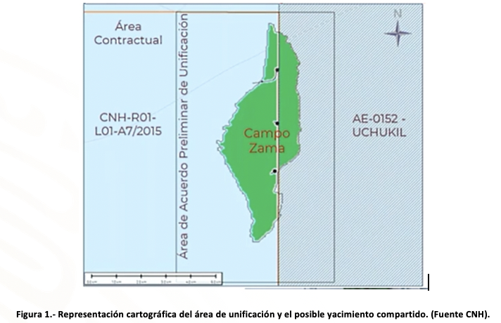 La Secretaría de Energía (SENER) instruyó la unificación de un yacimiento compartido, entre el campo Zama descubierto a través del Contrato CNH-R01-L01-A7/2015 a cargo de Talos Energy Offshore y la Asignación AE-0152-Uchukil cuya titularidad está a cargo de Petróleos Mexicanos.